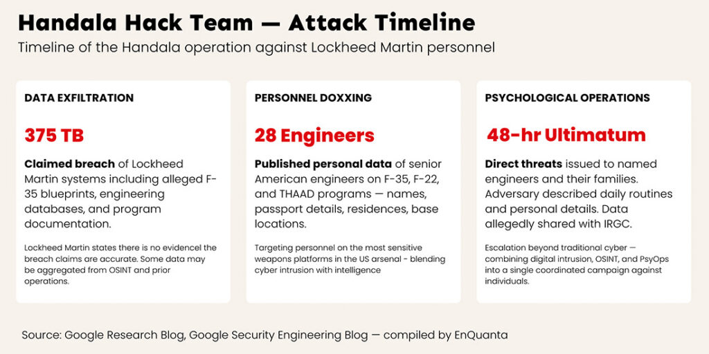 Our Take: The defense industrial base needs to stop treating personal data security and classified network security as separate problems. Handala didn’t need to breach Lockheed’s classified networks to create a national security incident. They targeted the people — and in doing so, demonstrated that human targeting can be just as operationally effective as network penetration. When an adversary can describe an engineer’s daily routine and threaten their family, the security perimeter has already been breached in the ways that matter most.