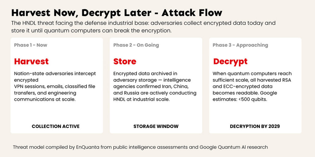 The Handala operation demonstrates that the collection phase is well underway. Google’s research tells us the decryption phase may arrive sooner than assumed. The gap between collection and decryption is the window the defense industrial base has to migrate to post-quantum cryptography — and that window just got shorter.